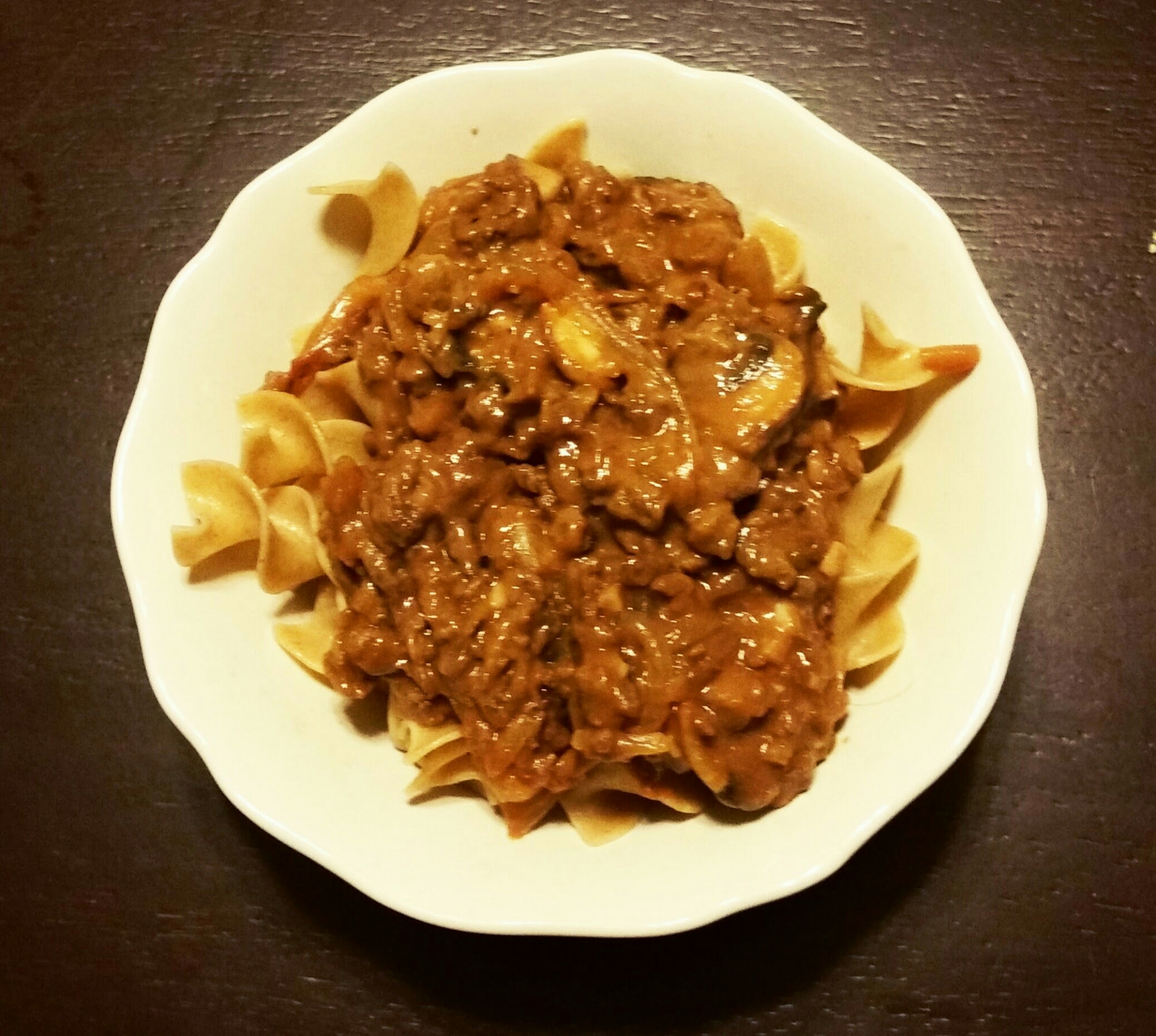 I have been trying to feed my family more vegetarian/vegan meals for the last couple of months. There are some recipes that we do miss from our time of being beef eaters, one of them being my quick and easy Stroganoff! I decided it was time to experiment and come up with a tasty replacement. You could easily make this vegan by replacing the sour cream with vegan sour cream. I hope you enjoy!